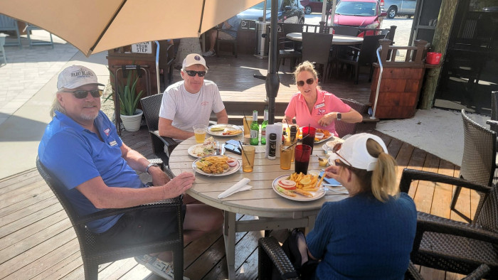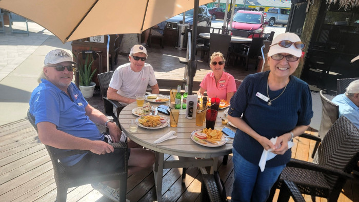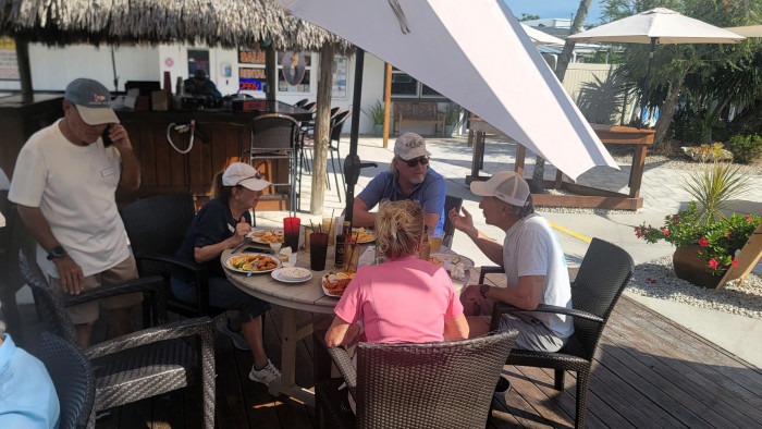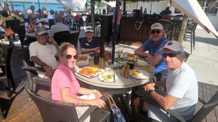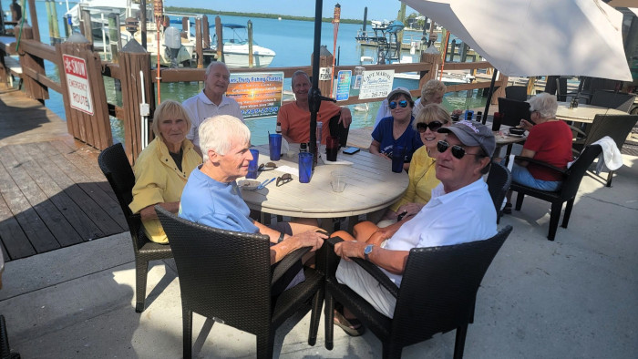 On December 4th 7 boats started out to Pelican Bay on a beautiful cloudless day. Unfortunately, only 6 made it on their own. Thanks to Mike and Maria who towed me in, I was able to coordinate the very successful event. We had 38 members enjoy an always great lunch. Food and service was excellent as always. Sure glad I have sea tow, unfortunately I had to use them. Thanx everyone for coming and enjoying another fun club outing.